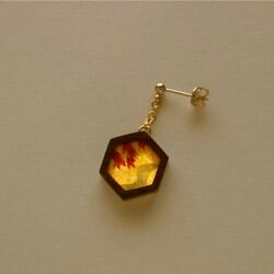 チョコレート&ナチュラル色の木枠に和紙の”はり絵”を組み込んだ木製チャームのハーフピアスです。